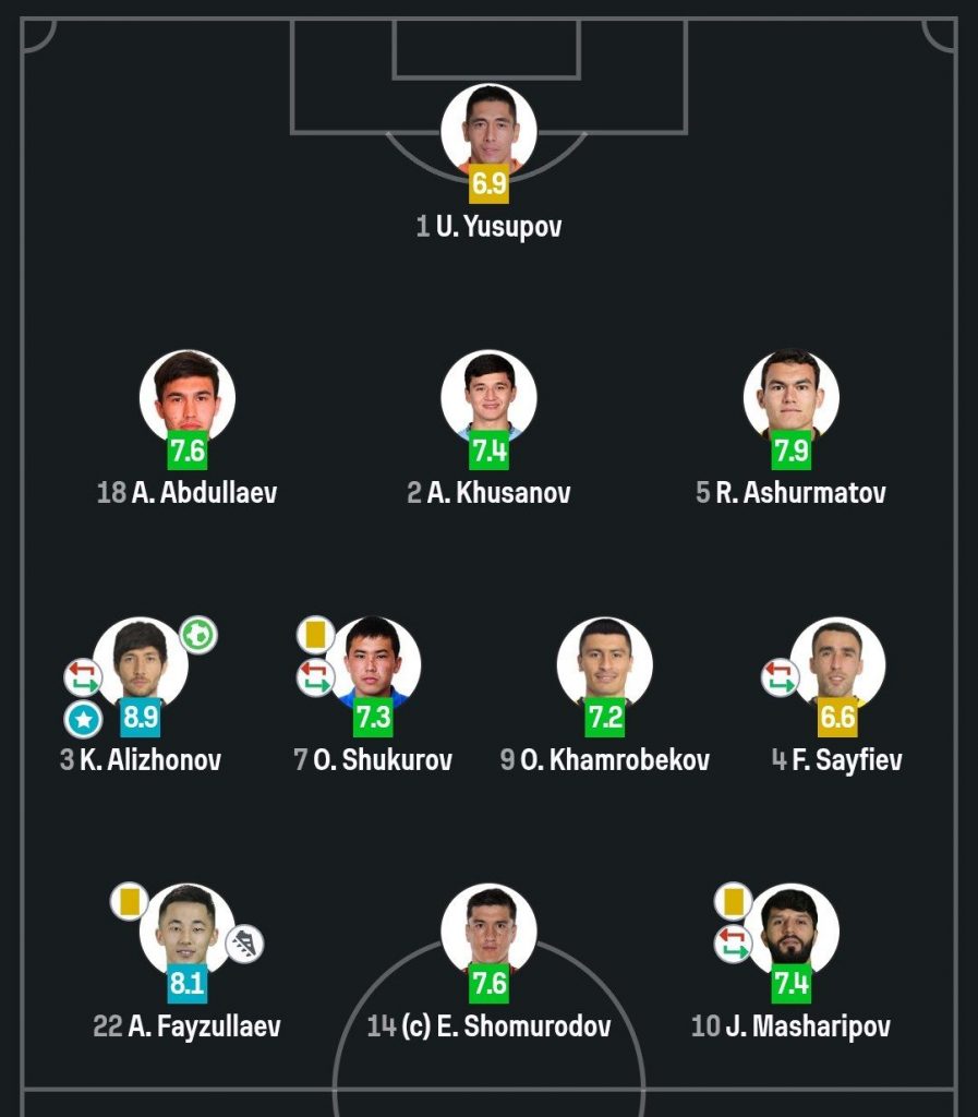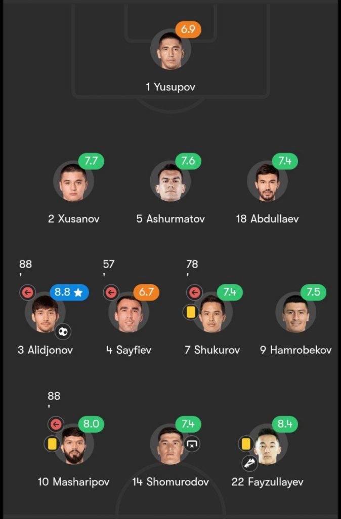 Xususan, SofaScore nashri terma jamoamiz a’zolarining o’yini quyidagicha baholadi: