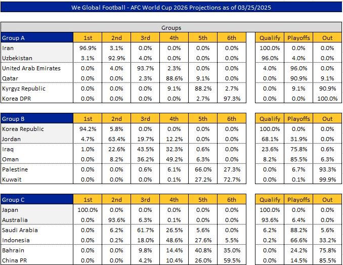 We Global Football nashri JCh-2026 saralashining 8-turidan so’ng yangilangan reytingni e’lon qildi.