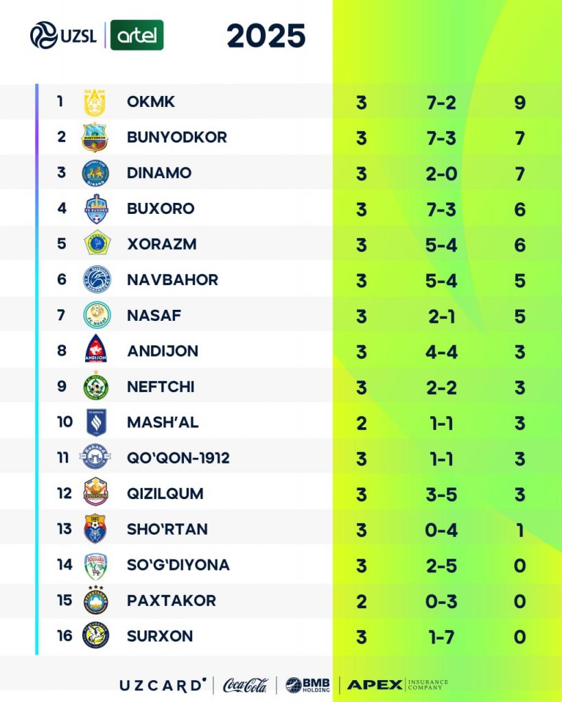 O’zbekiston Superligasida 3-tur uchrashuvlari o’z yakuniga yetdi. Ushbu tur qiziqarli bahslar va kutilmagan natijalar bilan yodda qoldi.