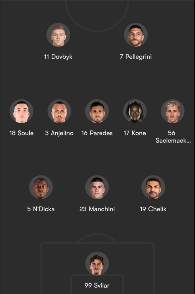 Jumladan, SofaScore nashri bugungi o’yin uchun Klaudio Ranyeri quyidagi futbolchilarni asosiy tarkibga kiritganini ta’kidladi.