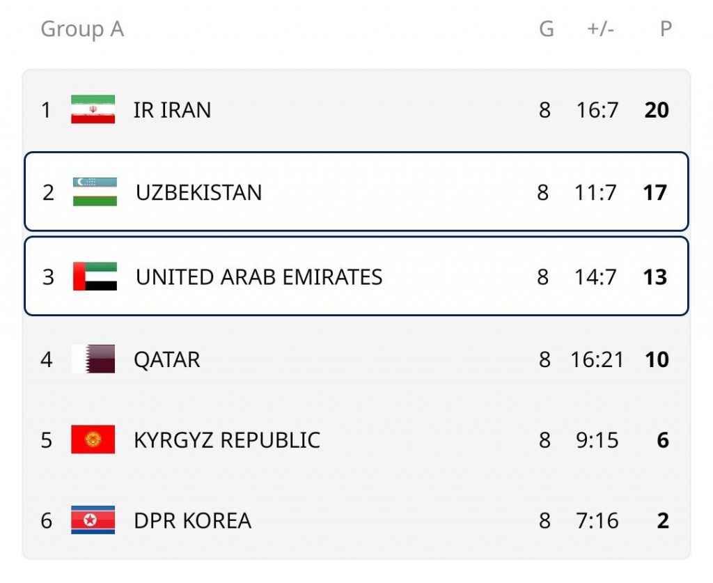 Hozirda tomonlarning “A” guruhidagi holati quyidagicha ko’rinish olgan: