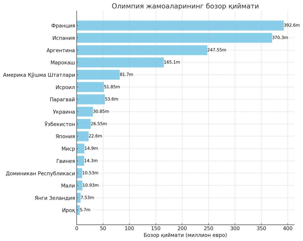 Parij-2024. O'zbekiston olimpiya terma jamoasi transfer narxi bo'yicha nechanchi o'rinda? - AllSport.24
