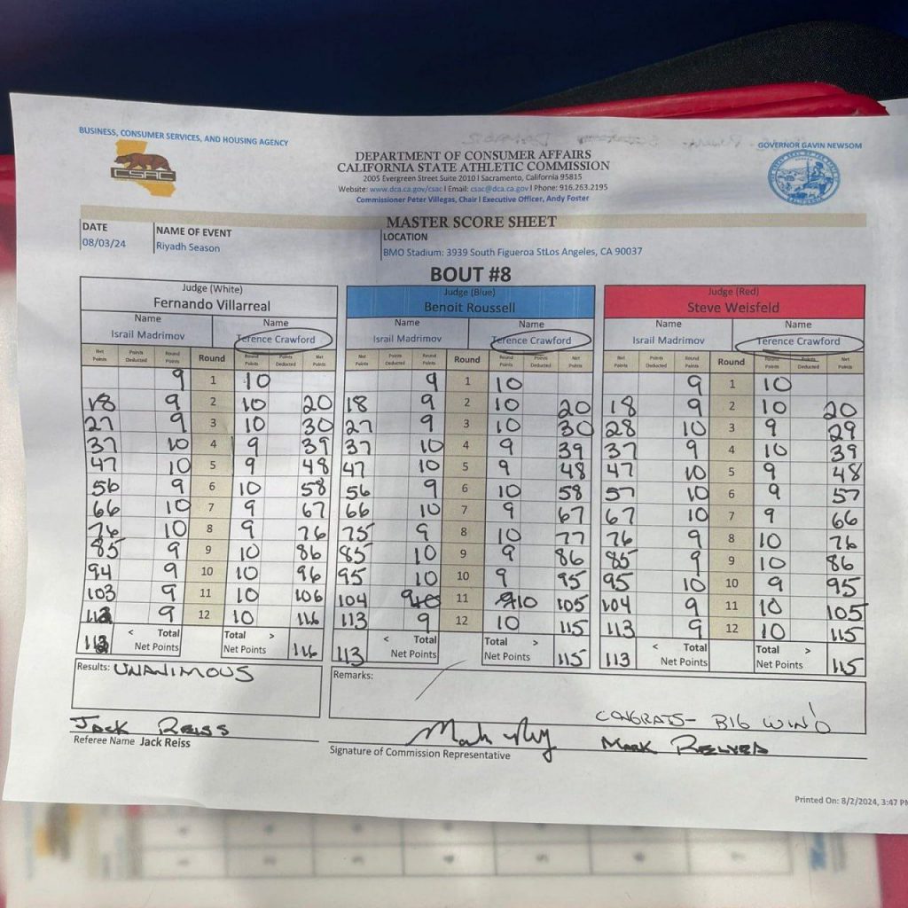 Madrimov va Krouford o'rtasidagi jang uchun hakamlar qaroridan ko'chirma e'lon qilindi - AllSport.24