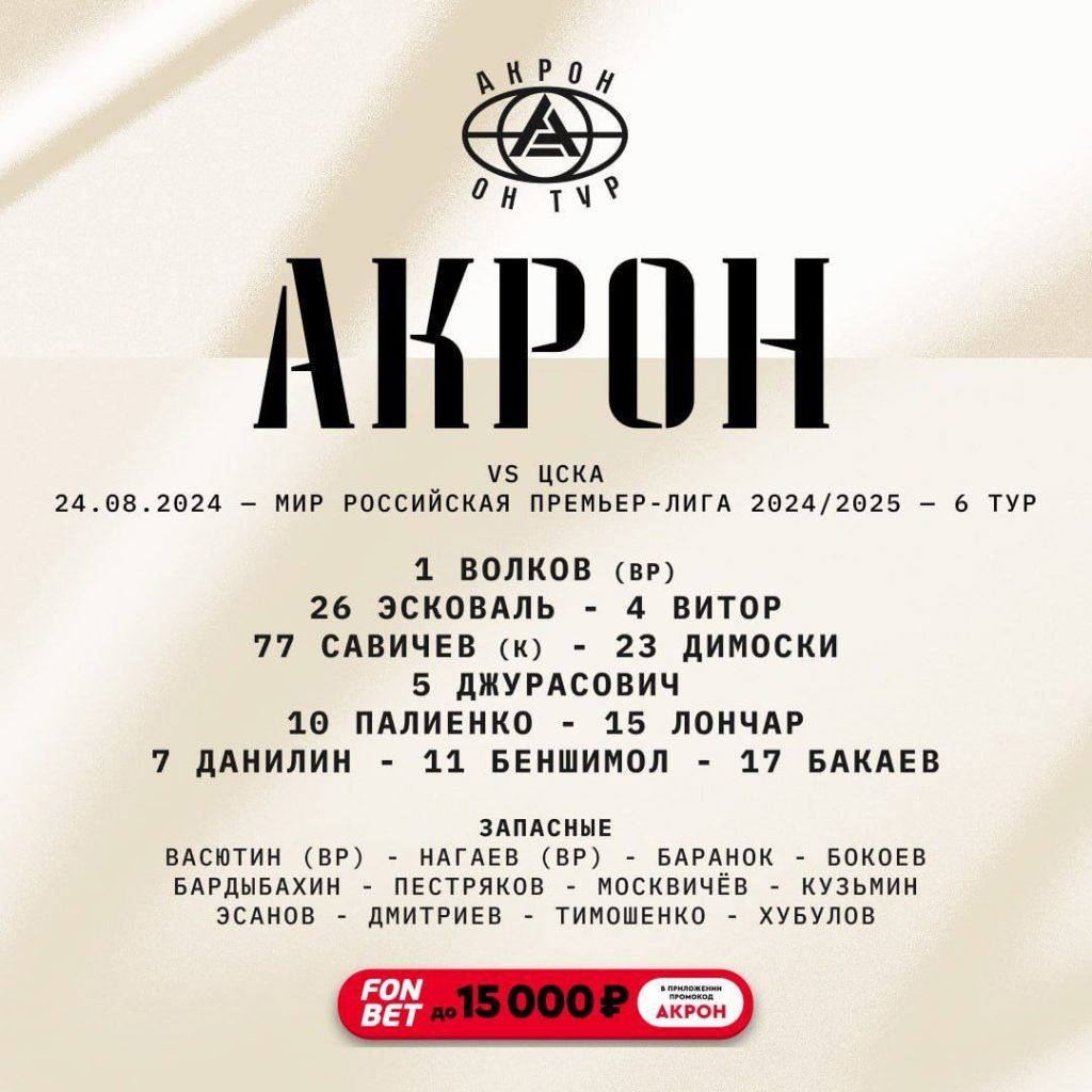 Eslatib o’tamiz, SSKA – “Akron” uchrashuvi Toshkent vaqti bilan soat 17:00da start oladi.