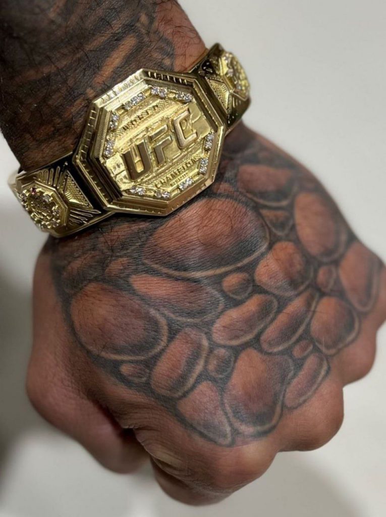 Yarimo’rta vazn toifasida amaldagi UFC chempioni Aleks Pereyraga chempionlik kamari shaklidagi bilaguzuk sovg’a qilindi. Jangchi ijtimoiy tarmoqlari orqali ushbu sovg’ani namoyish qildi.