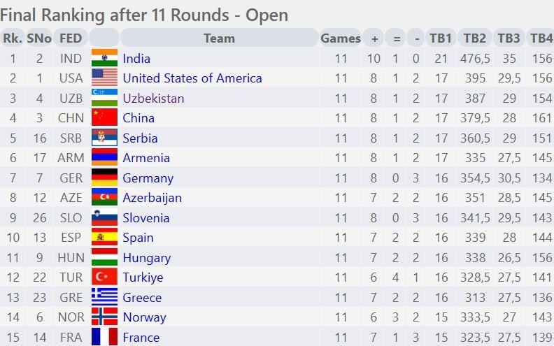 Vengriya poytaxti Budapesht shahrida ikki yillikning nufuzli turniri “Budapesht-2024” shaxmat Olimpiadasi o’z yakuniga yetdi.