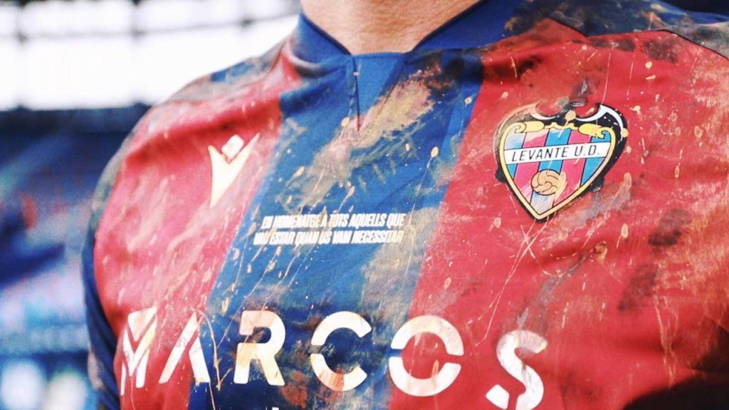 “Levante” futbolchilari Ispaniyadagi suv toshqinlaridagi qutqaruvchilarni qo’llab-quvvatlash maqsadida sun’iy kir qilingan futbolkalarda maydonga tushishdi.