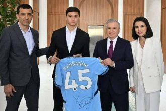 Abduqodir Husanov Shavkat Mirziyoyevga “Manchester Siti” libosini sovg’a qildi